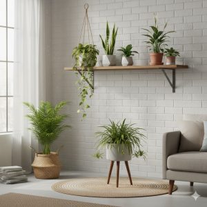 • Luz: Posicione as plantas perto de janelas ou varandas. Se o ambiente for escuro, opte por espécies resistentes à sombra, como jiboia ou zamioculca.